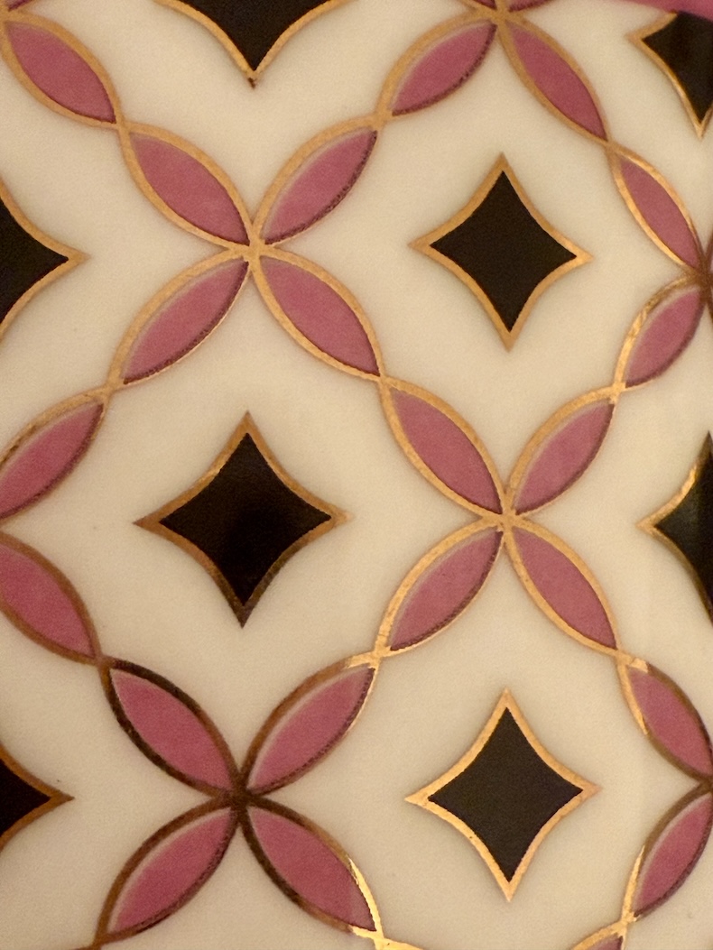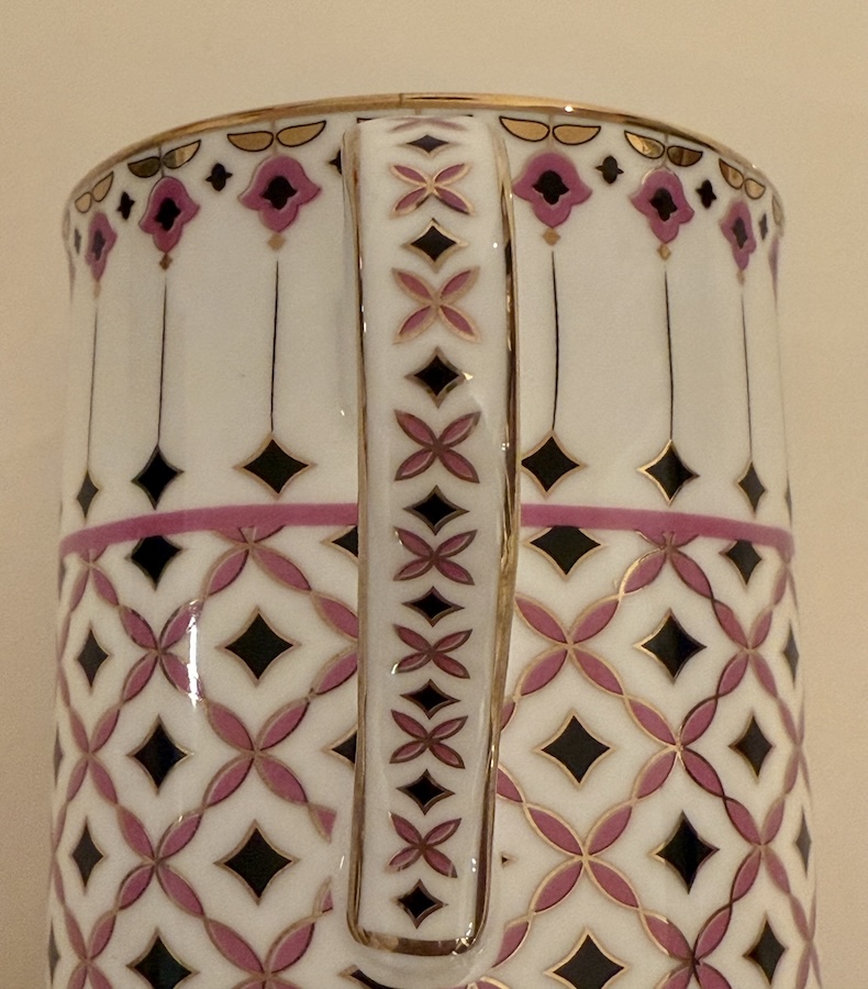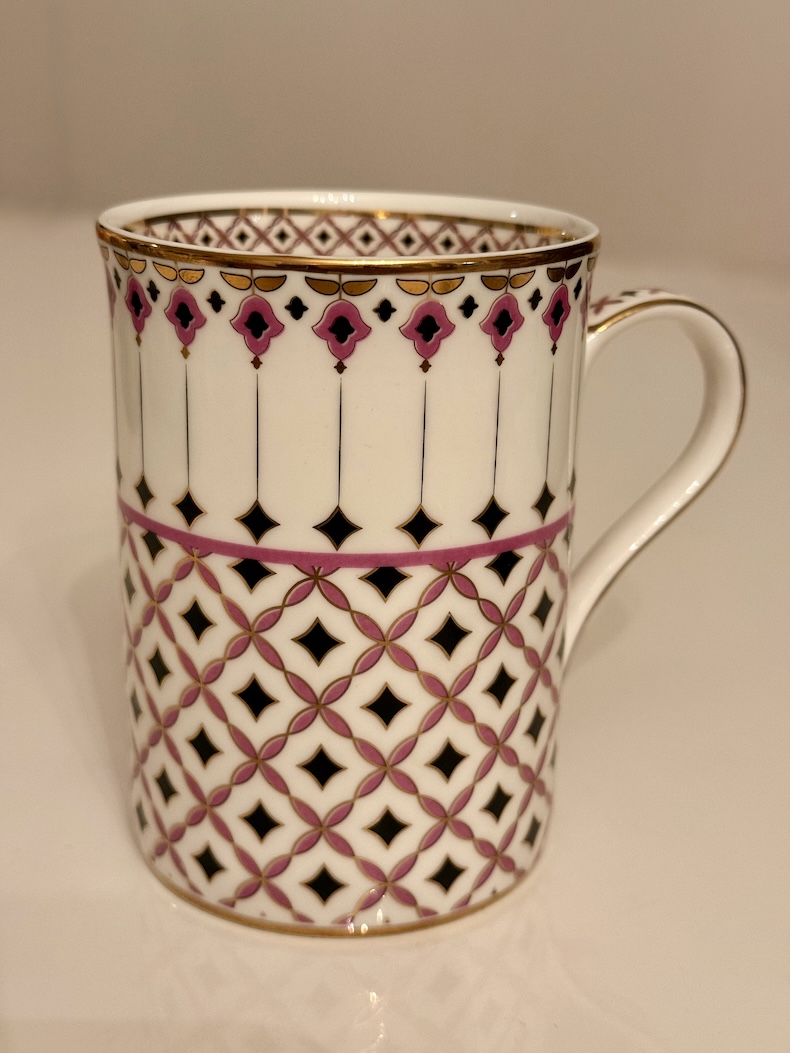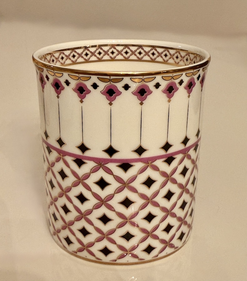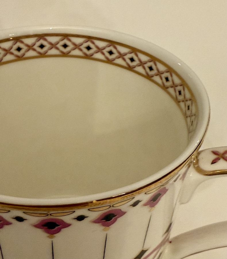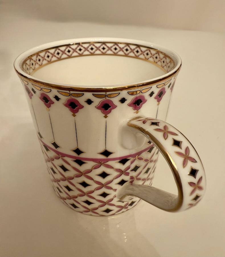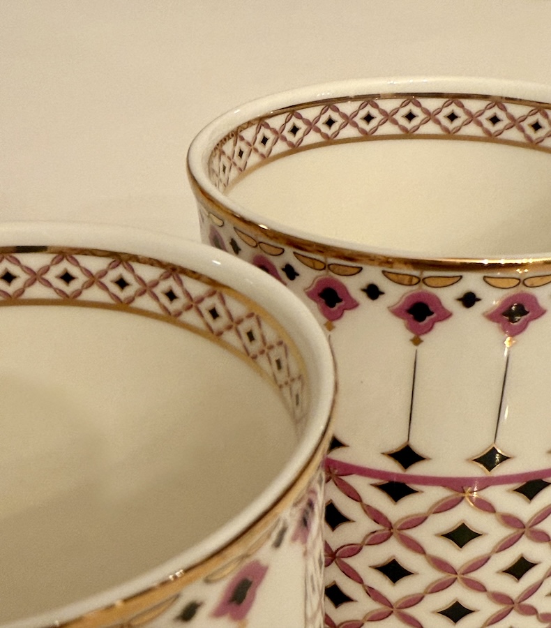 Auf feinster Keramik umgesetzt und von Hand mit einer filigranen Folientechnik veredelt, entsteht eine Tasse, die luxuriös wirkt und dennoch alltagstauglich bleibt.