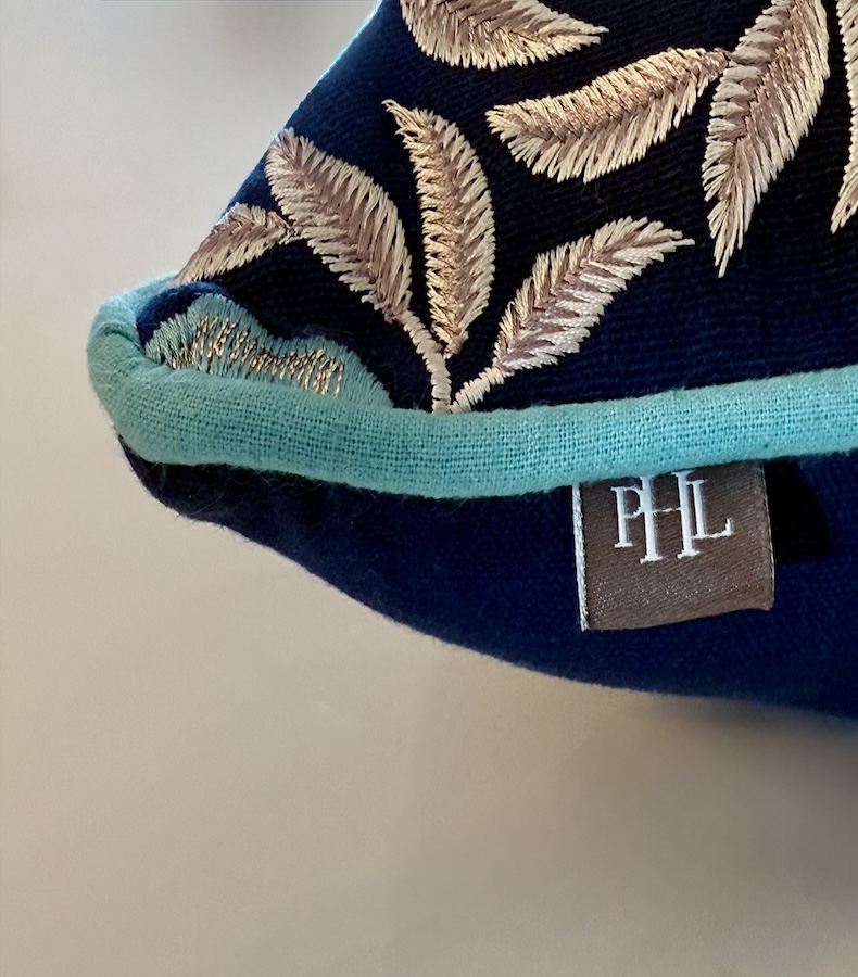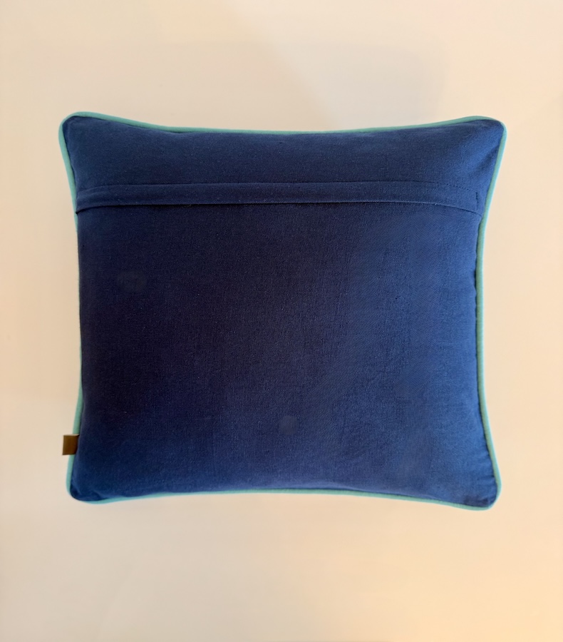 Unser Kissenbezug Blue Pomegranate ist eine Hommage an die Schönheit und Symbolkraft des Granatapfels – Sinnbild für Fülle, Lebensfreude und zeitlose Eleganz. Auf tiefblauem Grund entfalten sich kunstvolle Stickereien in sanften Türkis- und Cremetönen, die das traditionelle Motiv in moderner Form interpretieren. Jeder Bezug wird sorgfältig gearbeitet und trägt die Seele indischer Handwerkskunst in sich. Blue Pomegranate setzt nicht nur einen stilvollen Farbakzent, sondern verleiht jedem Raum Ruhe, Harmonie und einen Hauch von fernöstlicher Raffinesse. Jedes Kissen erzählt seine eigene Geschichte von Schönheit und Kultur.