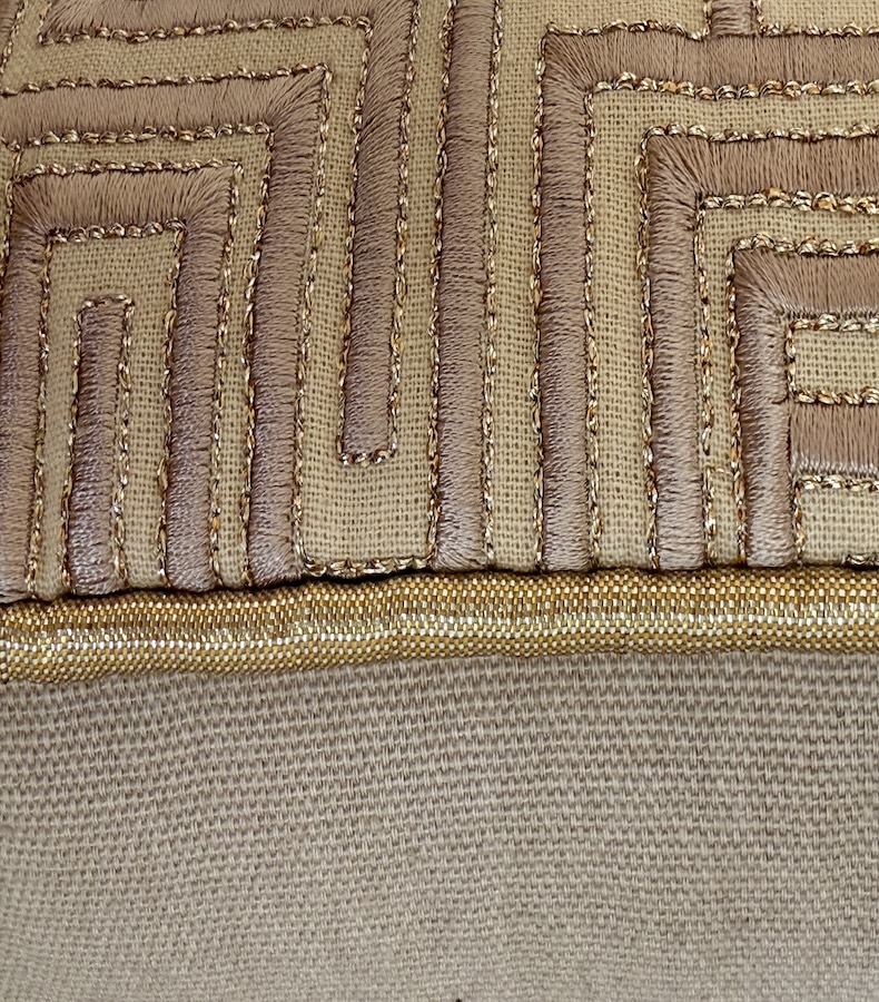 Der Kissenbezug Golden Maze besticht durch sein edles, geometrisches Labyrinth-Muster in sanften Goldtönen – ein Zusammenspiel von Struktur und Wärme. Die feinen Linien verleihen dem Design eine zeitlose Eleganz und bringen dezenten Glanz in dein Zuhause.