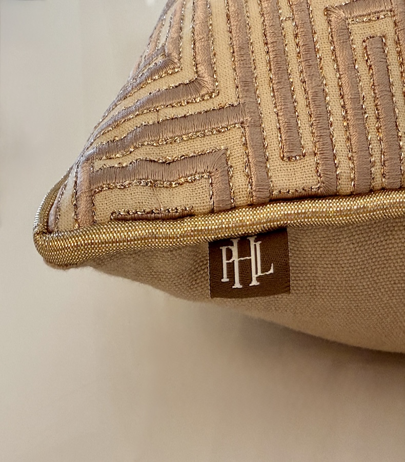 Ob als stilvolle Ergänzung zu deiner bestehenden Kissenlandschaft oder als strahlender Blickfang für sich allein – Golden Maze setzt ein Statement von moderner Raffinesse und kunstvoller Ästhetik. Jedes Kissen erzählt seine eigene Geschichte von Schönheit und Kultur.