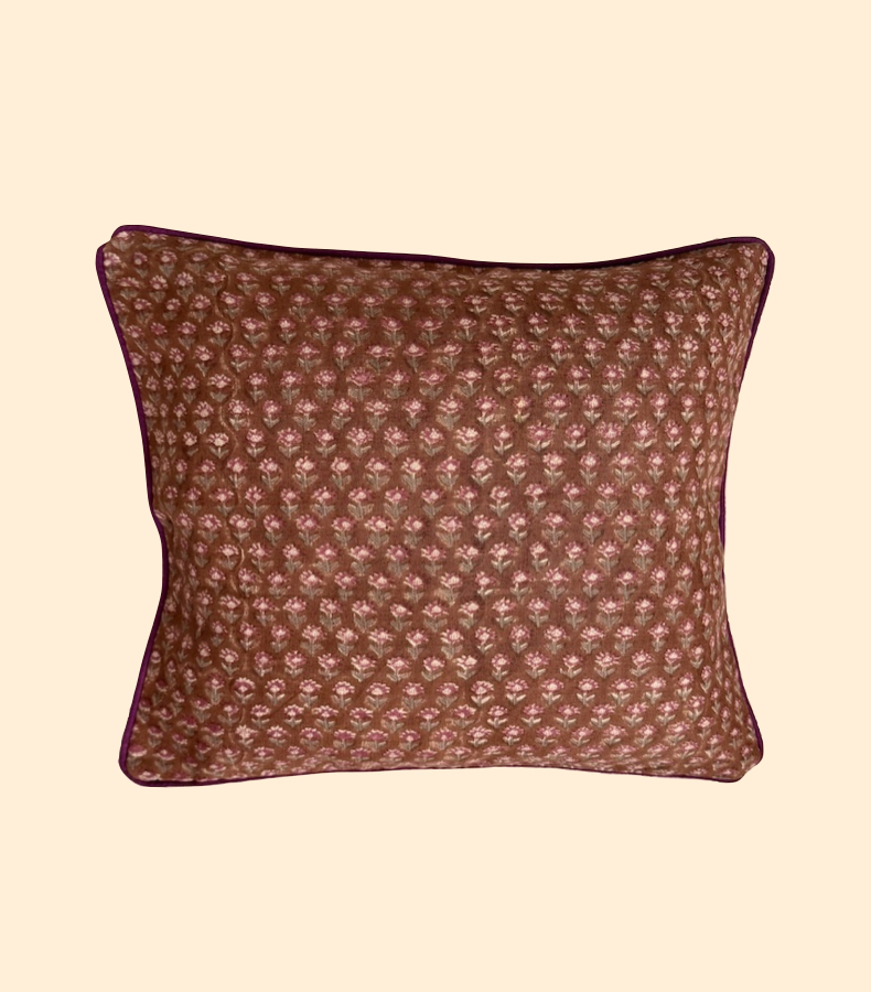 Mulberry Whisper bringt die Farbwelt Indiens in ihr Zuhause – reich, sinnlich und dennoch unaufdringlich. Der feine botanische Print auf warmem Braun verbindet traditionelle Handwerkskunst mit einem zeitgemäß luxuriösen Look.