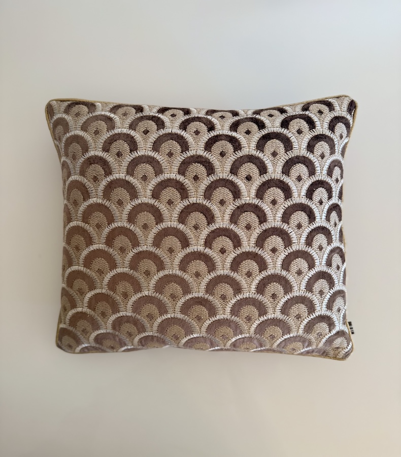Der Kissenbezug Peacock vereint die Anmut des Pfaus mit der Kunst feinster Handwerkskunst. Das fächerförmige Muster in warmen Gold- und Beigetönen erinnert an die prachtvollen Federn des majestätischen Vogels und verleiht jedem Raum einen Hauch von Eleganz und Luxus.