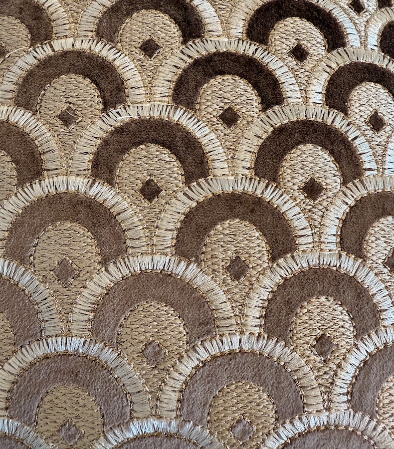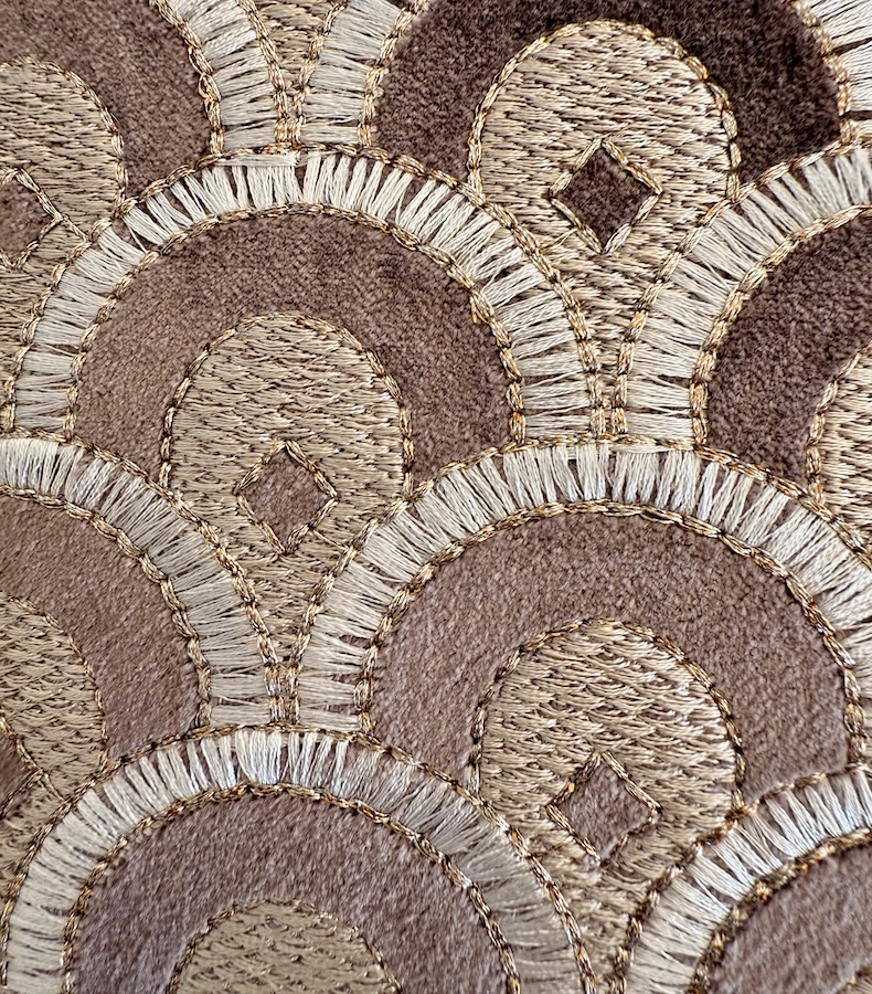 Sorgfältig gefertigt und kunstvoll bestickt, zeichnet sich Peacock durch seine außergewöhnliche Struktur und Liebe zum Detail aus. Das sanft schimmernde Muster reflektiert das Licht auf subtile Weise und bringt Wärme und Tiefe in dein Interieur.