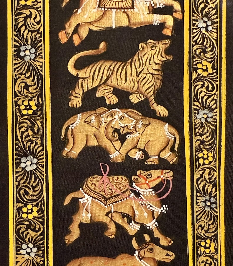 „Royal Harmony“ ist ein faszinierendes Werk, das die Symbolik indischer Tierwelt in harmonischer Balance zeigt.