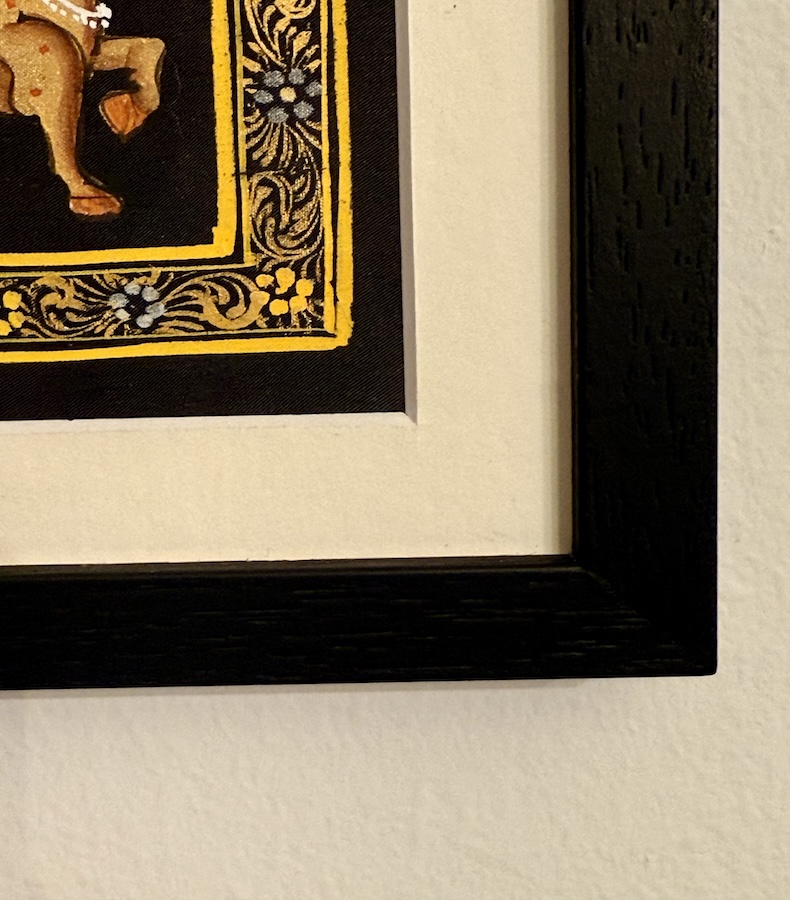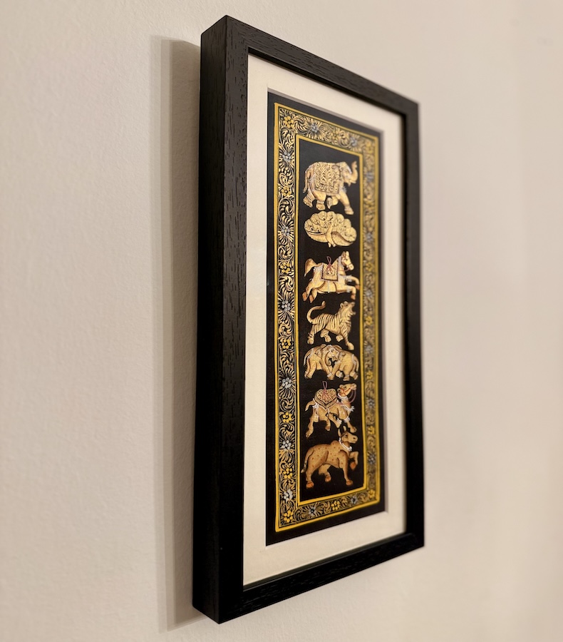 - Herstellung: In liebevoller Handarbeit von Kunsthandwerkern in Indien gefertigt und in Österreich mit höchster Sorgfalt gerahmt.