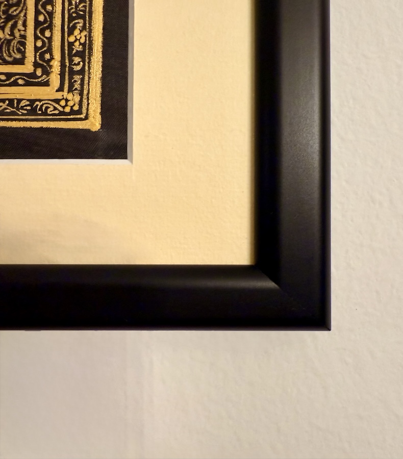 - Herstellung: In liebevoller Handarbeit von Kunsthandwerkern in Indien gefertigt und in Österreich mit höchster Sorgfalt gerahmt.