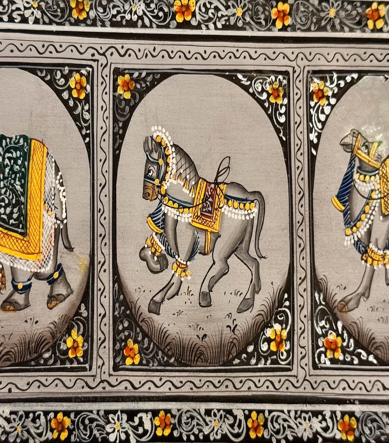 „Trinity of Grace“ erzählt von der tiefen Verbundenheit zwischen Mensch, Natur und Geist – eingefangen in der filigranen Kunst der Rajasthani Miniaturmalerei.