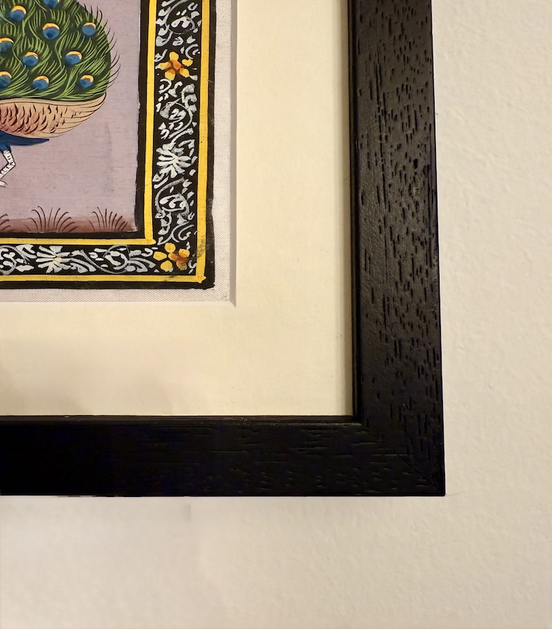 - Herstellung: In liebevoller Handarbeit von Kunsthandwerkern in Indien gefertigt und in Österreich mit höchster Sorgfalt gerahmt.