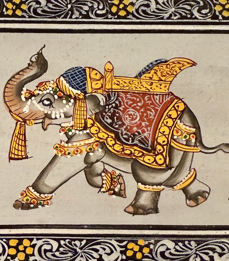 Elefant, Pferd und Kamel ziehen in stiller Eleganz durch die Landschaft – jedes Tier trägt eine tief verwurzelte Bedeutung: Der Elefant steht für Glück und Wohlstand,