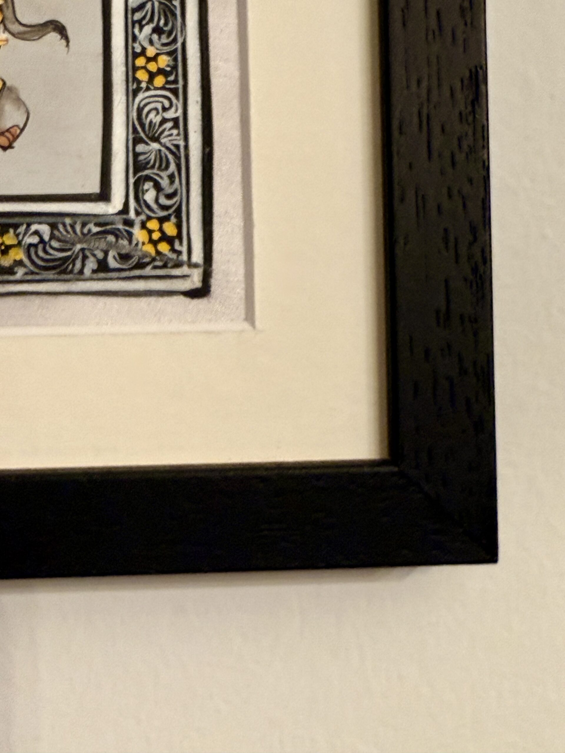 - Material: Originalzeichnung auf feiner Seide, geschützt hinter hochwertigem Museumsglas. Das Kunstwerk ist in ein säurefreies Passepartout gefasst und von einem feinem, schwarzen Holzrahmen umgeben.