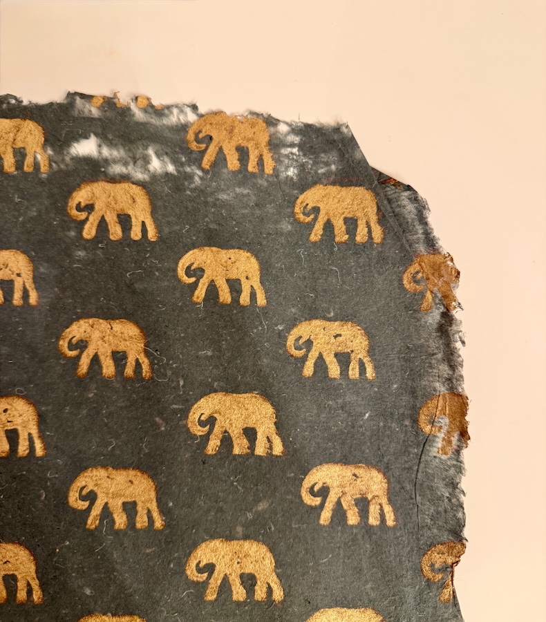 Das smaragdgrüne Papier ist mit goldenen Elefanten verziert – inspiriert von den königlichen Karawanen Rajasthans, die einst Reichtum, Kultur und Handwerkskunst über die Wüstenwege trugen. Jedes Blatt ist ein Unikat, geprägt von der liebevollen Handschrift der Kunsthandwerker. Dieses handgefertigte Papier eignet sich perfekt für edle Geschenkverpackungen, künstlerische Projekte oder stilvolle Papeterie – eine Hommage an indisches Kunsthandwerk und ein Stück indischer Seele, geschaffen, um besondere Momente zu veredeln.