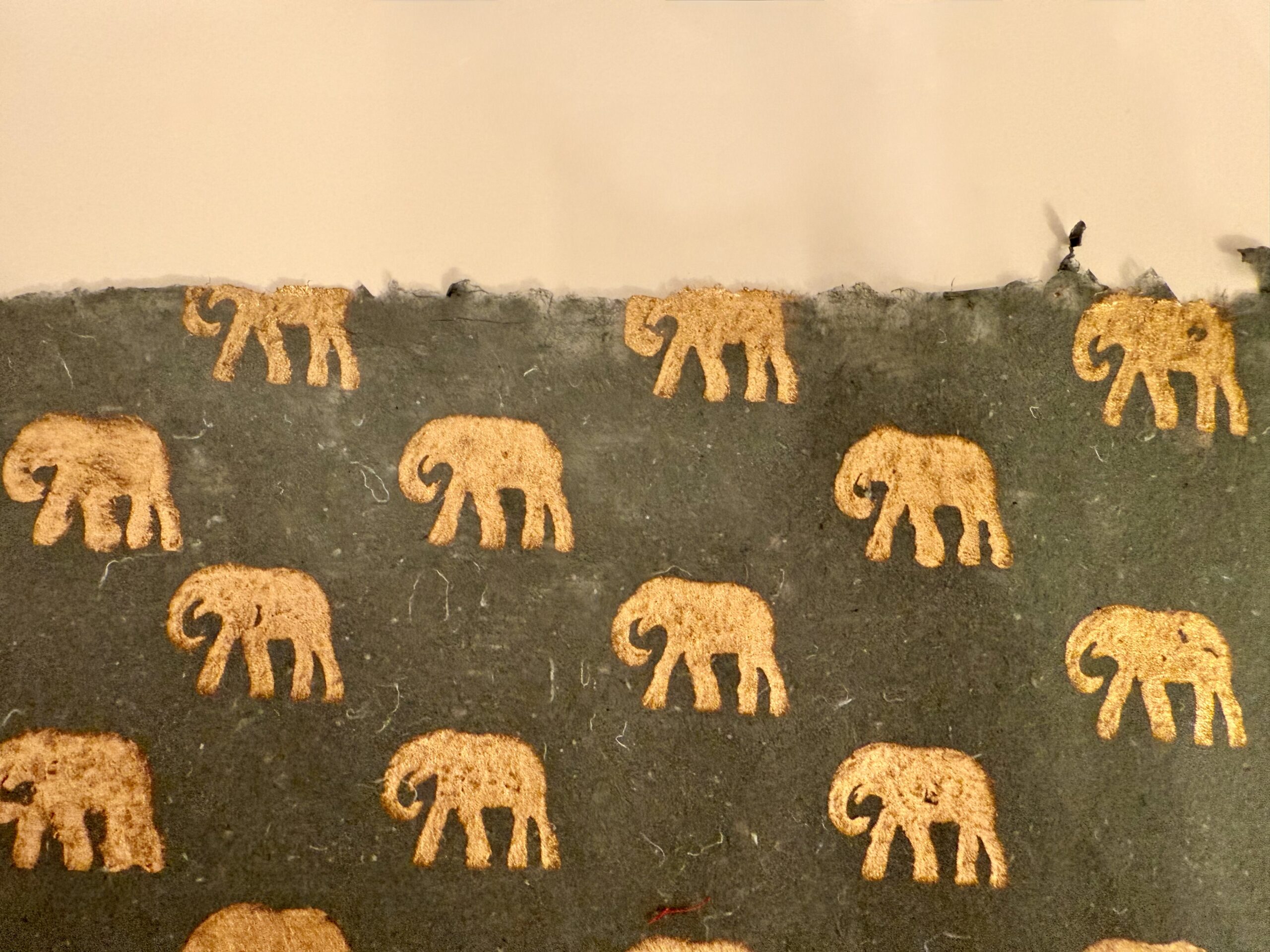Unser wunderschönes Papier Emerald Caravan ist ein handgeschöpftes Papier in edlem smaragdgrün, verziert mit goldenen Elefantenmotiven. Inspiriert von den Karawanen des alten Indiens, bringt dieses Papier die Magie von Tradition und Handwerkskunst in jedes Detail.