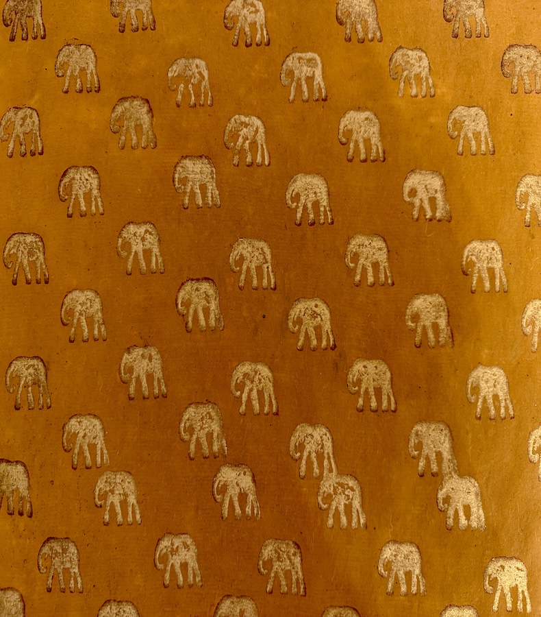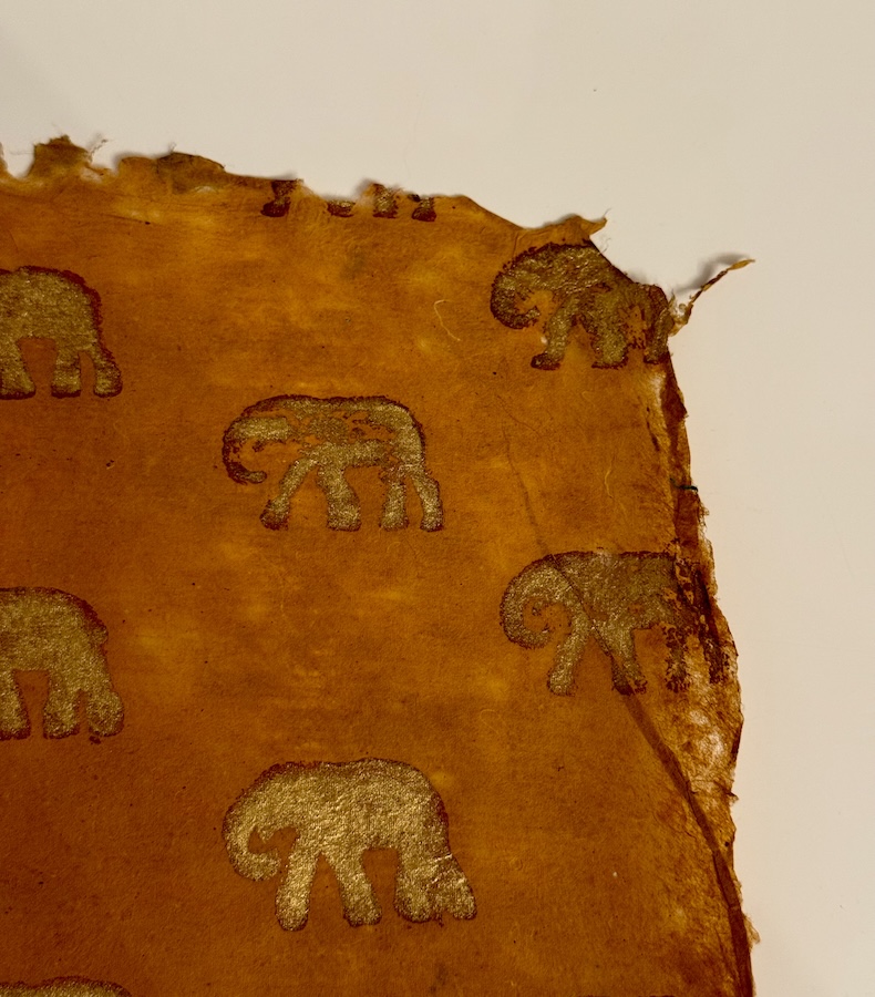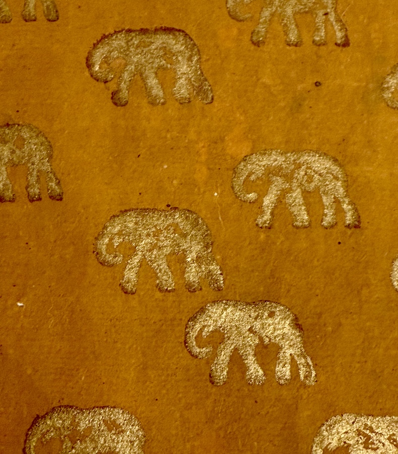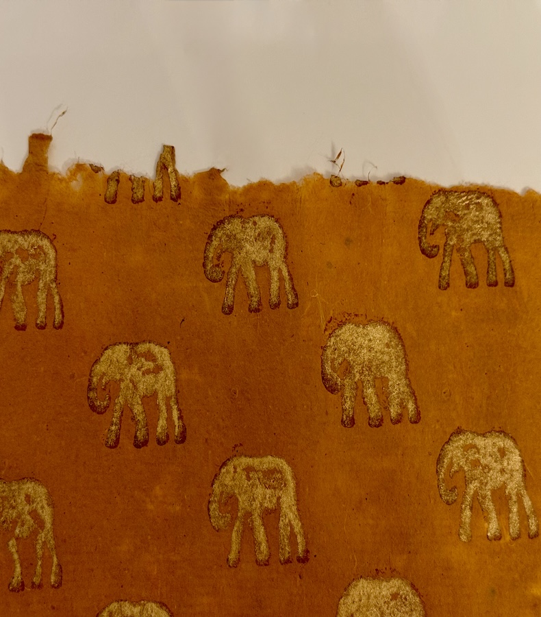 Unser wunderschönes Papier Golden Heritage verkörpert einen Hauch von Geschichte – zart schimmernde Elefantenmotive auf warmem Goldbraun, inspiriert von den Ornamenten alter Maharadscha-Paläste.