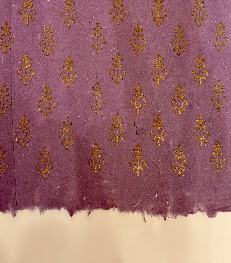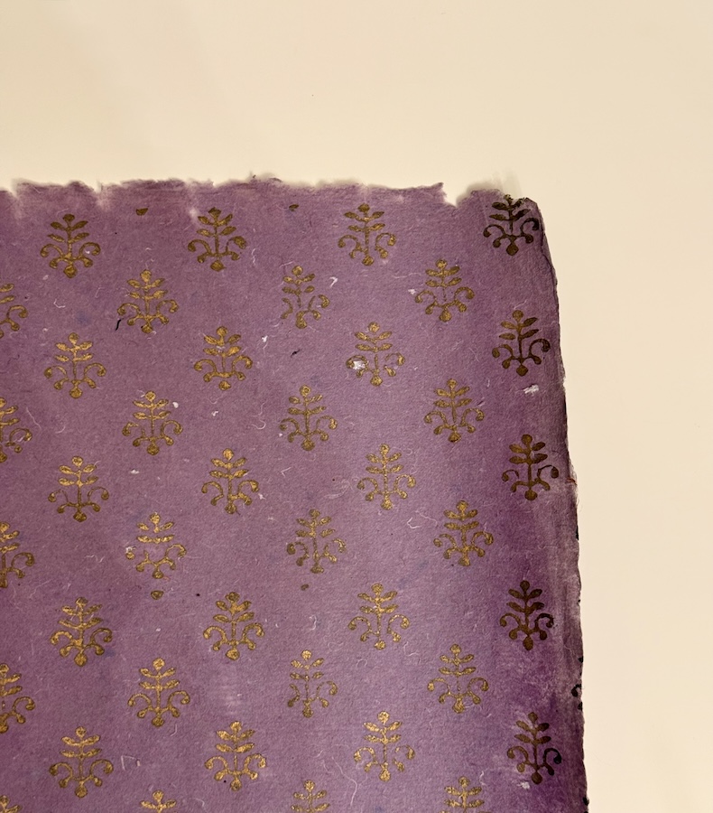 In den Werkstätten von The Bombay Paperie in Ahmedabad entsteht dieses außergewöhnliche Papier – handgeschöpft aus recycelter Baumwolle, wie seit Jahrhunderten in alter indischer Tradition. Jedes Blatt wird mit handgeschnitzten Holzstempeln bedruckt, wodurch leichte Unregelmäßigkeiten entstehen – die schönste Bestätigung echter Handarbeit. Feine Abweichungen machen jedes Stück zum Unikat und unterstreichen den handgefertigten Charakter.