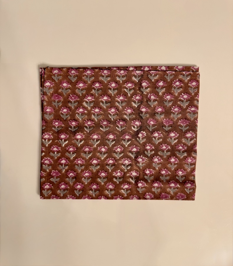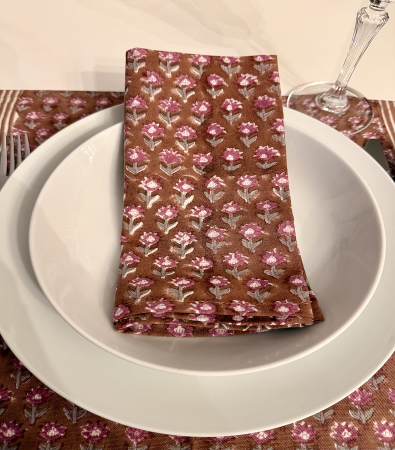 Unsere Servietten aus der Mocca Mousse Dream Collection II sind ein Ausdruck authentischer, indischer Handwerkskunst. Das fein abgestimmte florale Design in natürlichen Mocca- und Berrytönen schafft eine warme, moderne Tischästhetik. Perfekt für Dinnerabende, Familienfeste oder als hochwertiges Detail im täglichen Gebrauch.