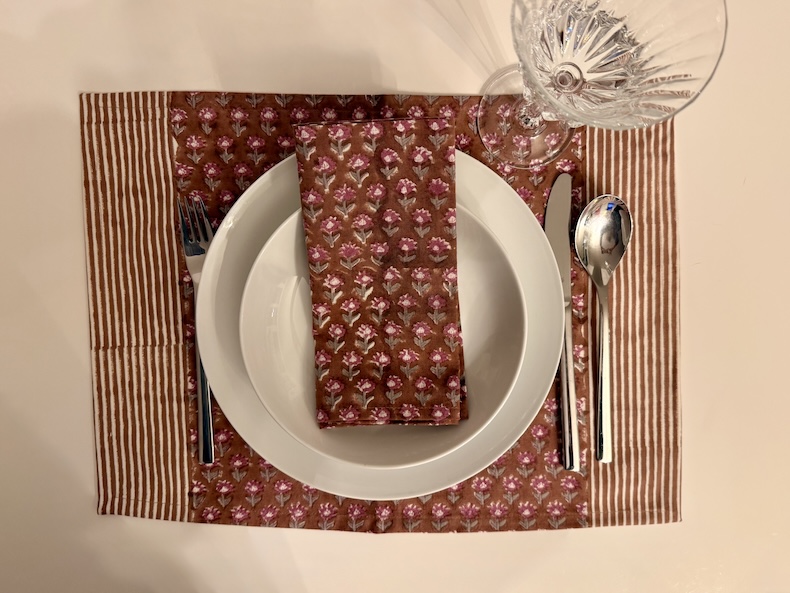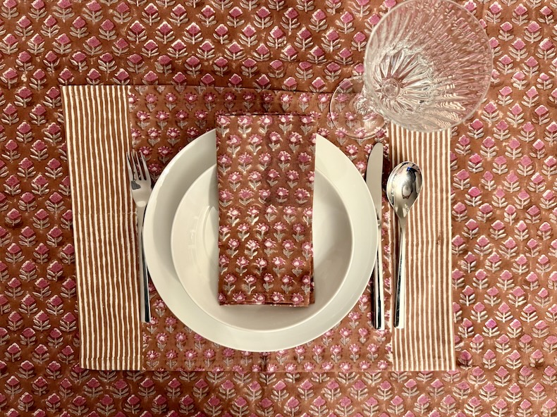 Warme Erdtöne, sanfte Rosénuancen und feine Blockprint-Motive verschmelzen in der Mocca Mousse Collection II zu einer harmonischen, ruhigen und dennoch ausdrucksstarken Tischästhetik. Diese Linie ist die weichere, modernere Interpretation der ursprünglichen Mocca-Mousse-Welt – eine neue, elegante Variation des Signature-Looks.