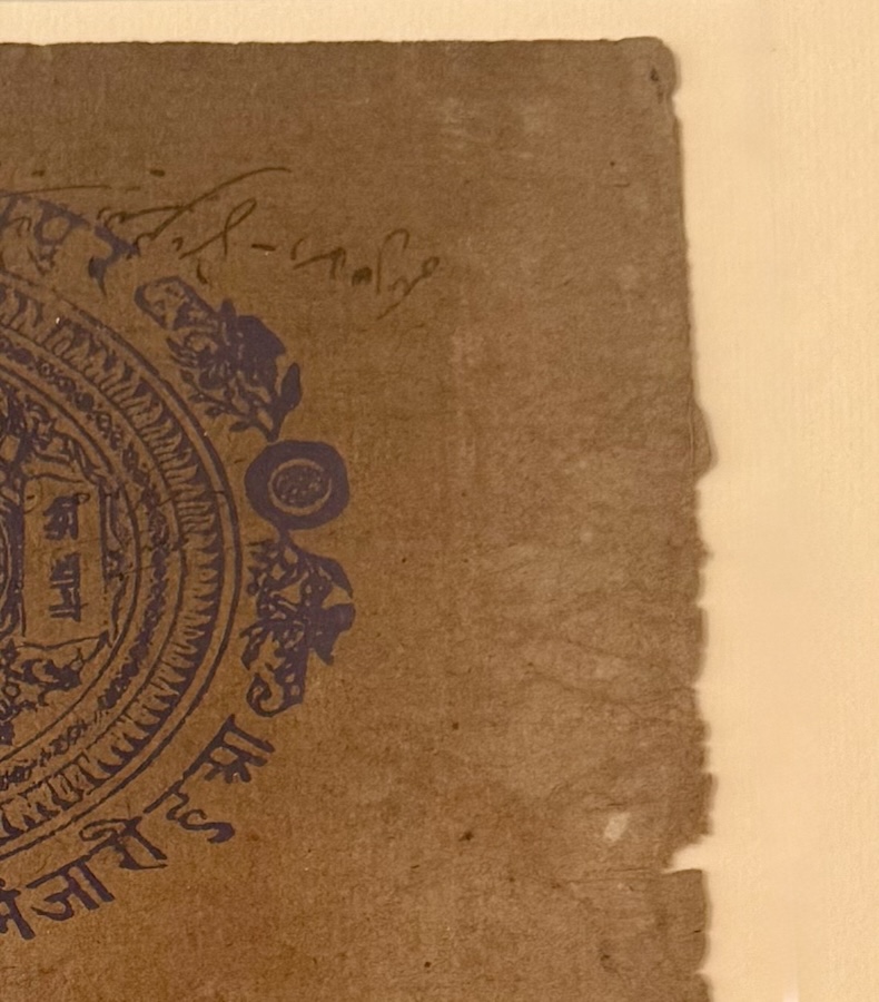 Dieses Kunstwerk zeigt einen Pfau – das Nationalsymbol Indiens – in seiner ganzen Anmut und Schönheit. Von Hand gezeichnet auf altem Stempelpapier mit zarter Urdu-Kalligrafie im Hintergrund vereint sich Geschichte, Kultur und Kunsthandwerk zu einem einzigartigen Ausdruck indischer Ästhetik.